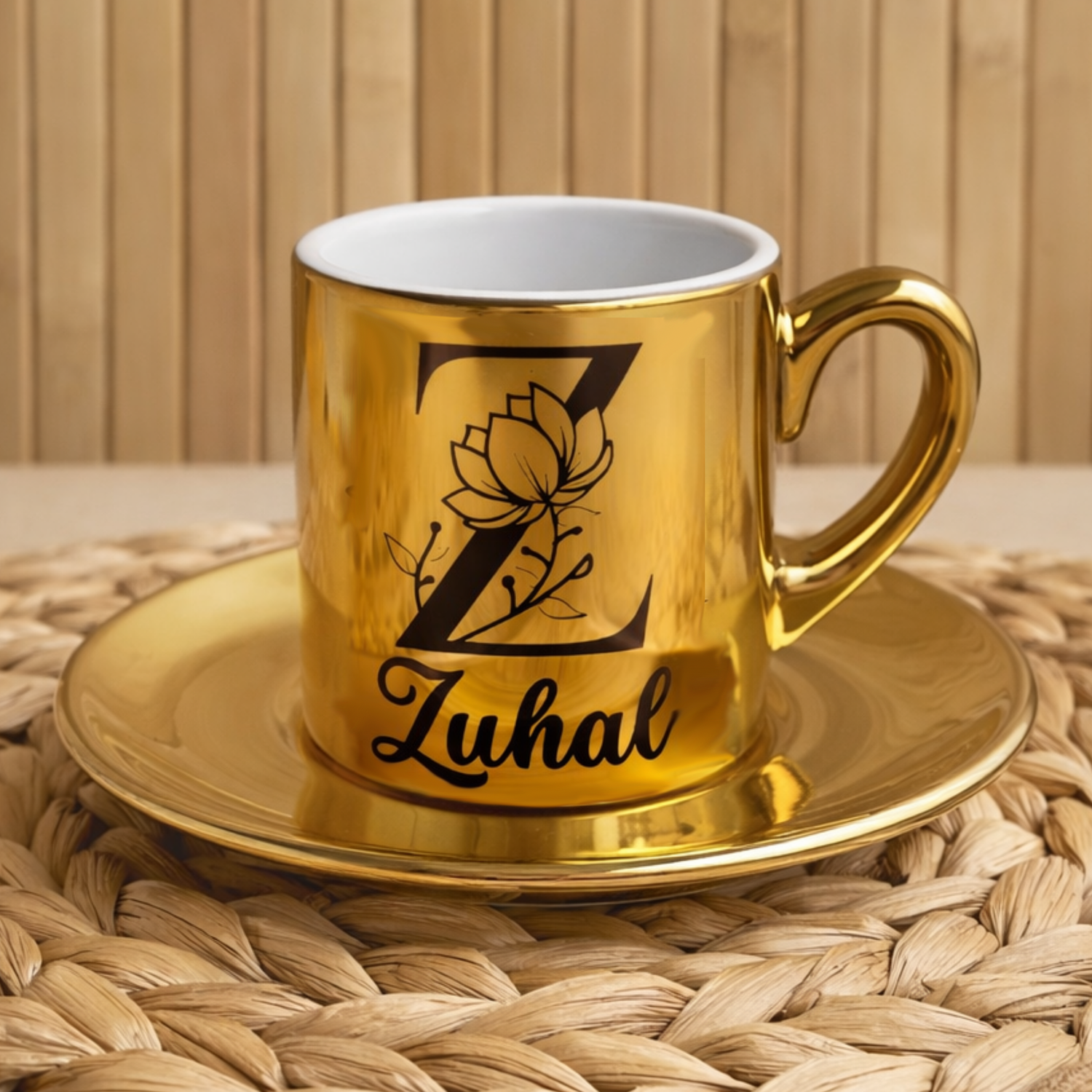 Harf Temalı Kişiye Özel İsimli Türk Kahvesi Fincanı Gold