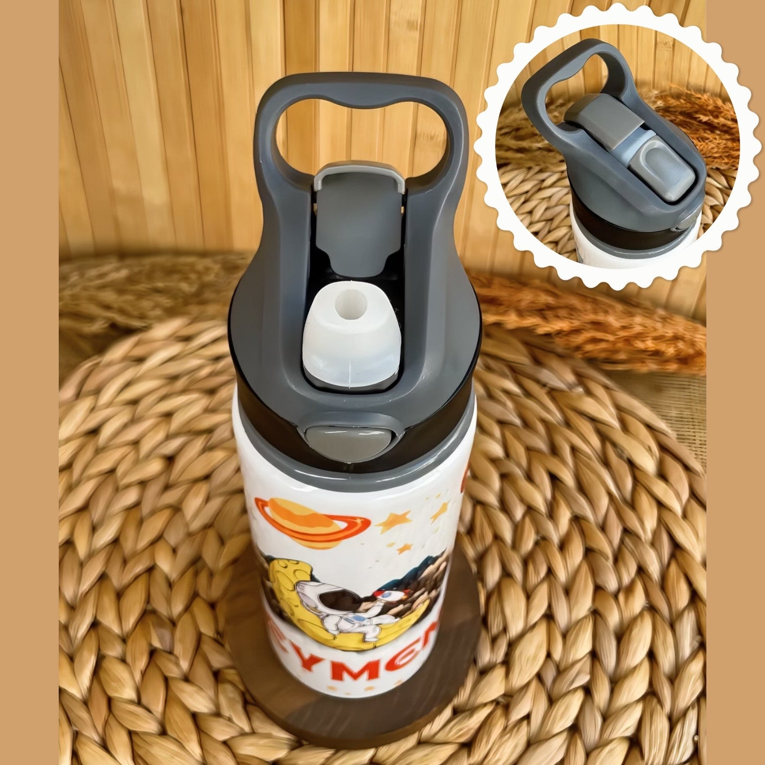 Çocukların severek kullanacağı, renkli ve eğlenceli tasarımlara sahip kişiye özel isimli pipetli matara, okulda, kreşte, sporda ve günlük kullanımda pratik ve sağlıklı bir içim deneyimi sunar. İsmine özel tasarım ile miniklerin favorisi olacak!