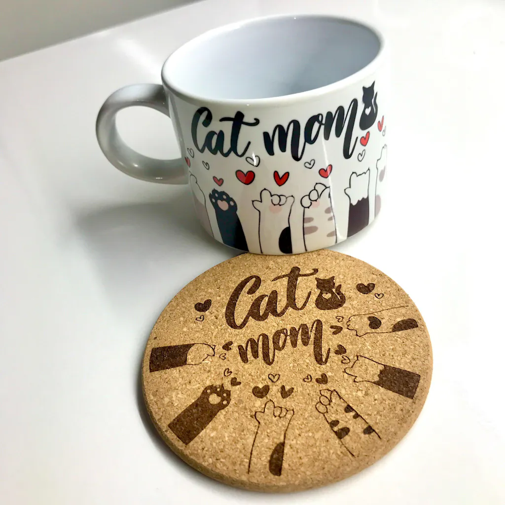 Cat Mom Baskılı Kedi Temalı Mantar Bardak Altlığı (1 Adet)