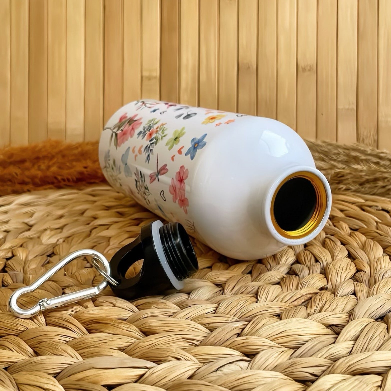 Çiçek Fısıltısı İsme Özel Alüminyum Kancalı Kapaklı Suluk Matara 600 ml