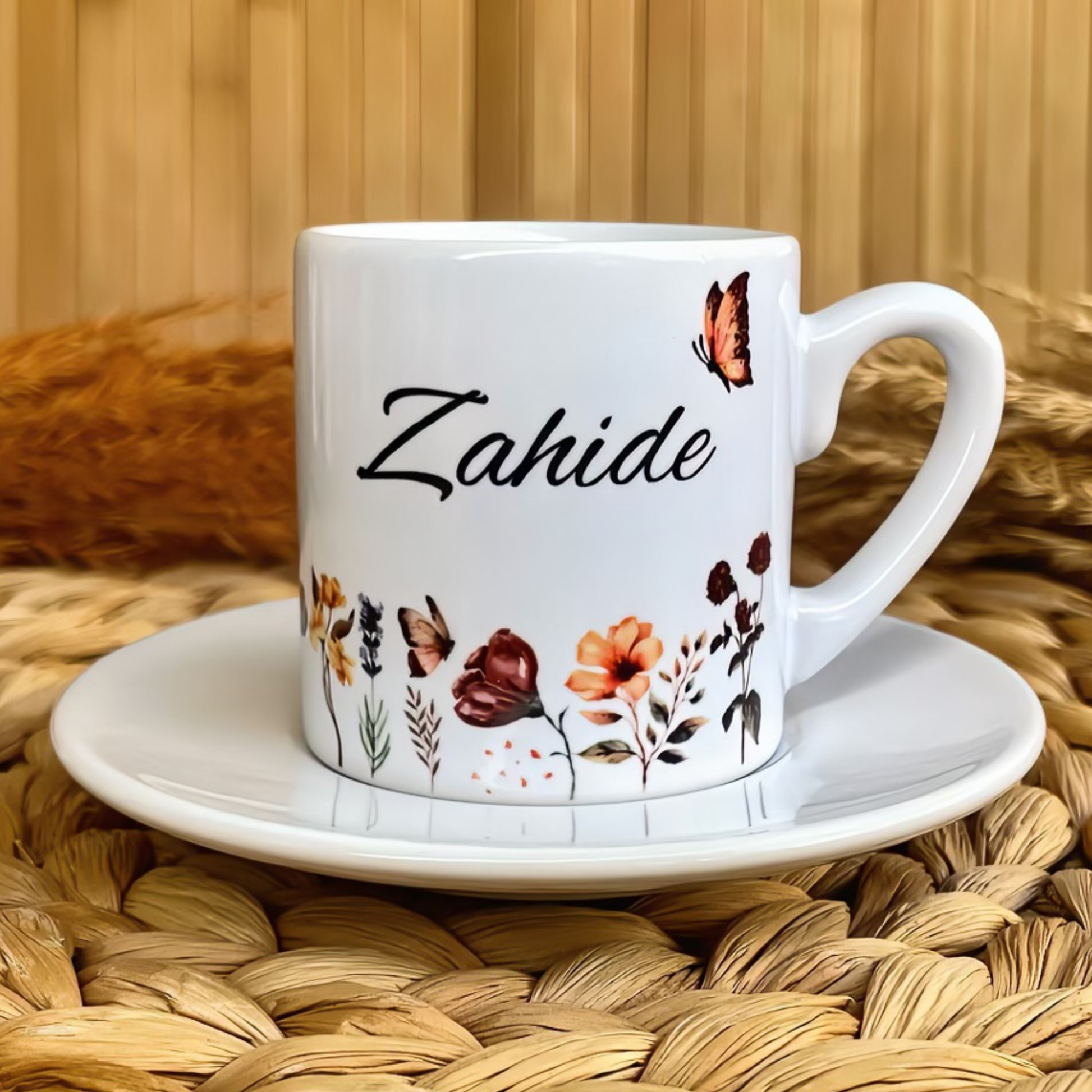Gün Batımı Çiçekleri Temalı Kişiye Özel İsimli Türk Kahvesi Fincanı