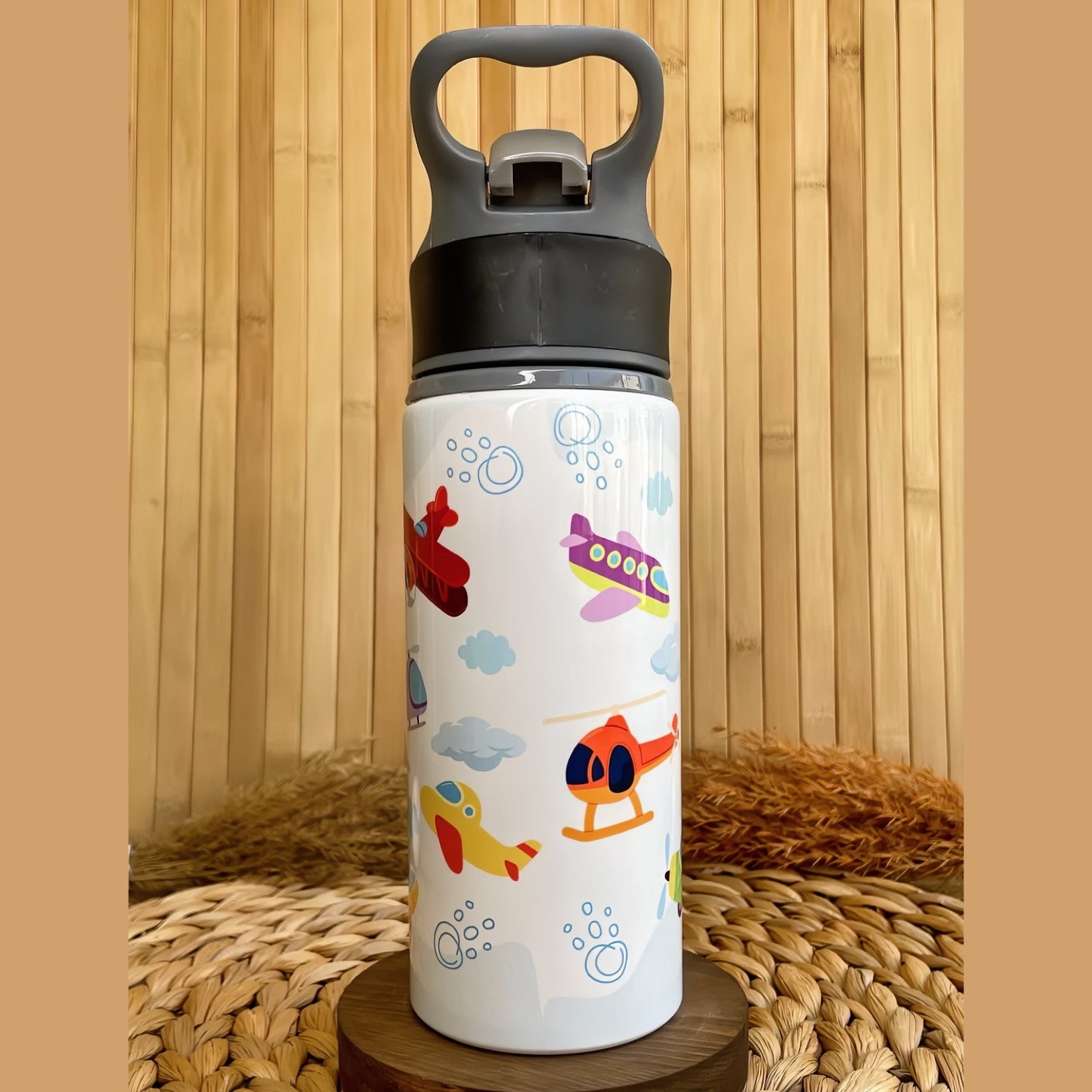 Hava Araçları Uçak Helikopter Temalı İsme Özel Alüminyum Pipetli Suluk Matara 650 ml