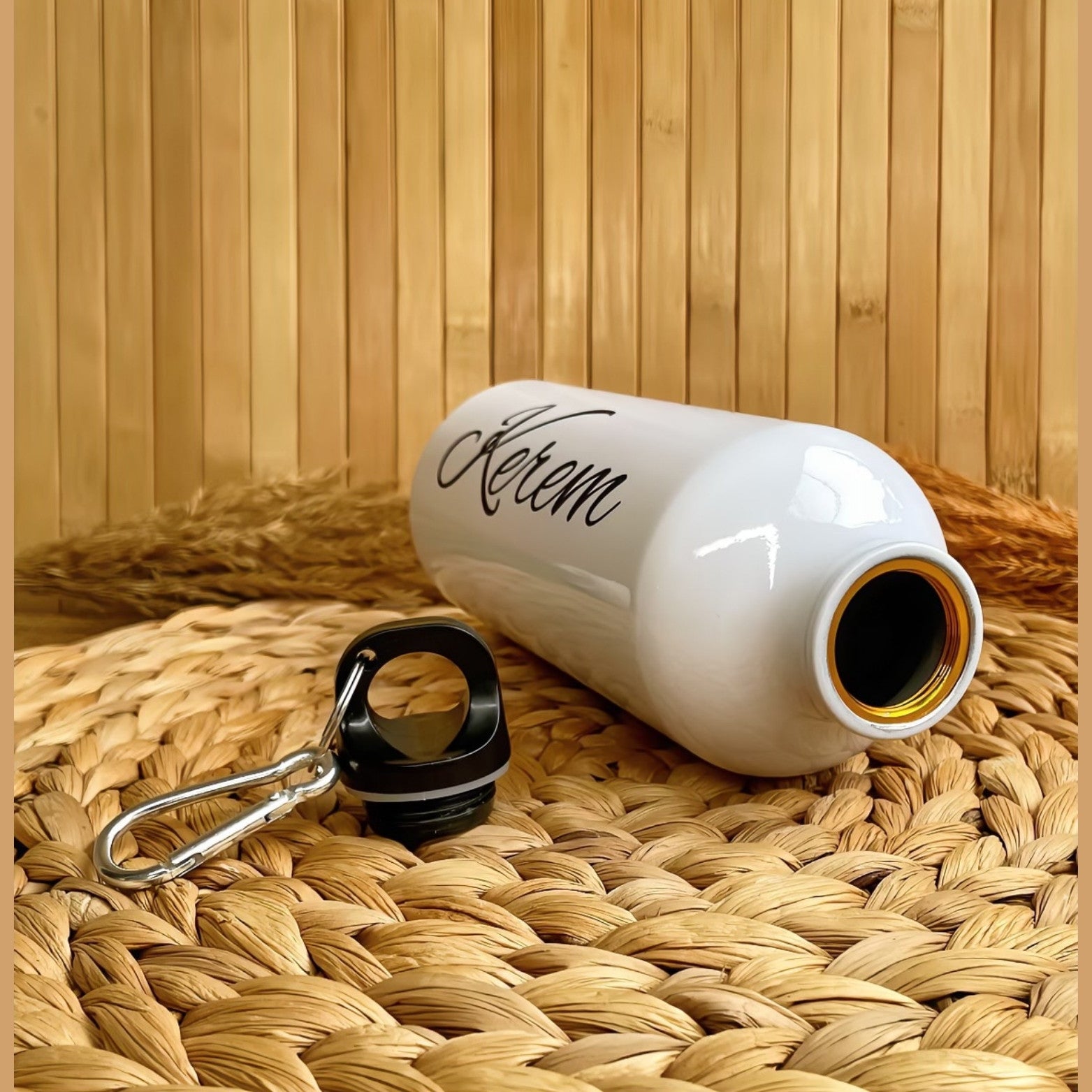 İsme Özel Alüminyum Kancalı Kapaklı Suluk Matara 600 ml