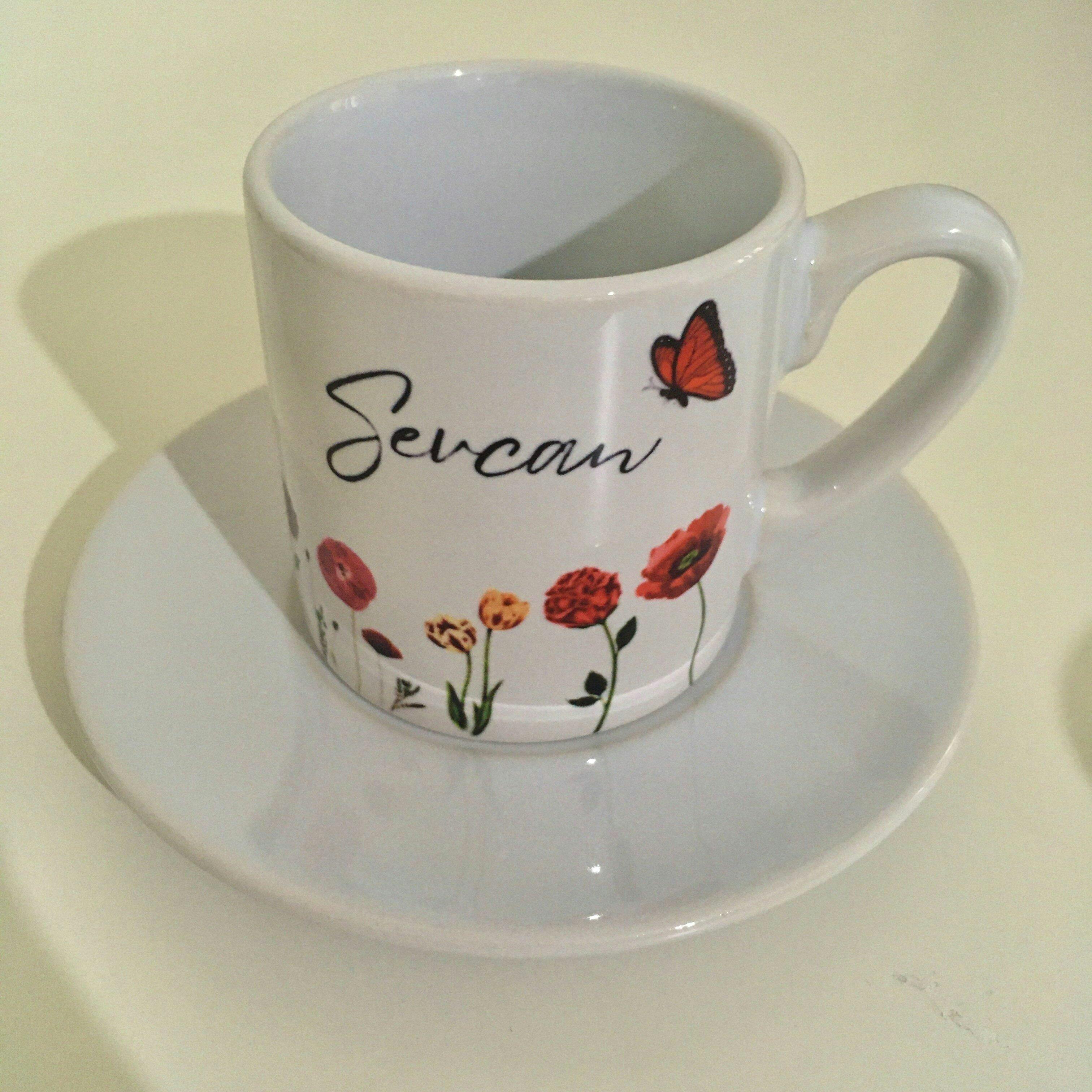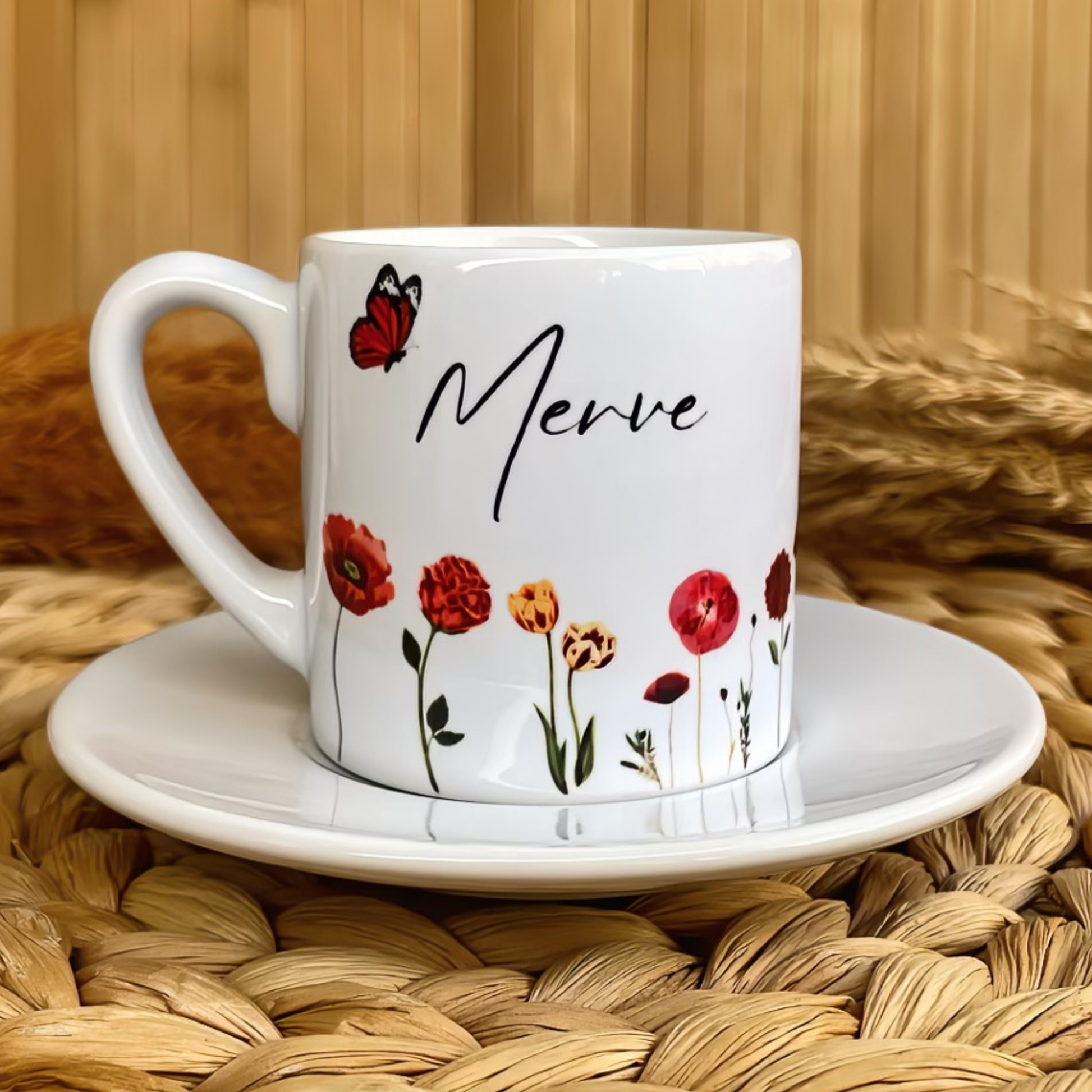 Kırmızı Düş Temalı Kişiye Özel İsimli Türk Kahvesi Fincanı