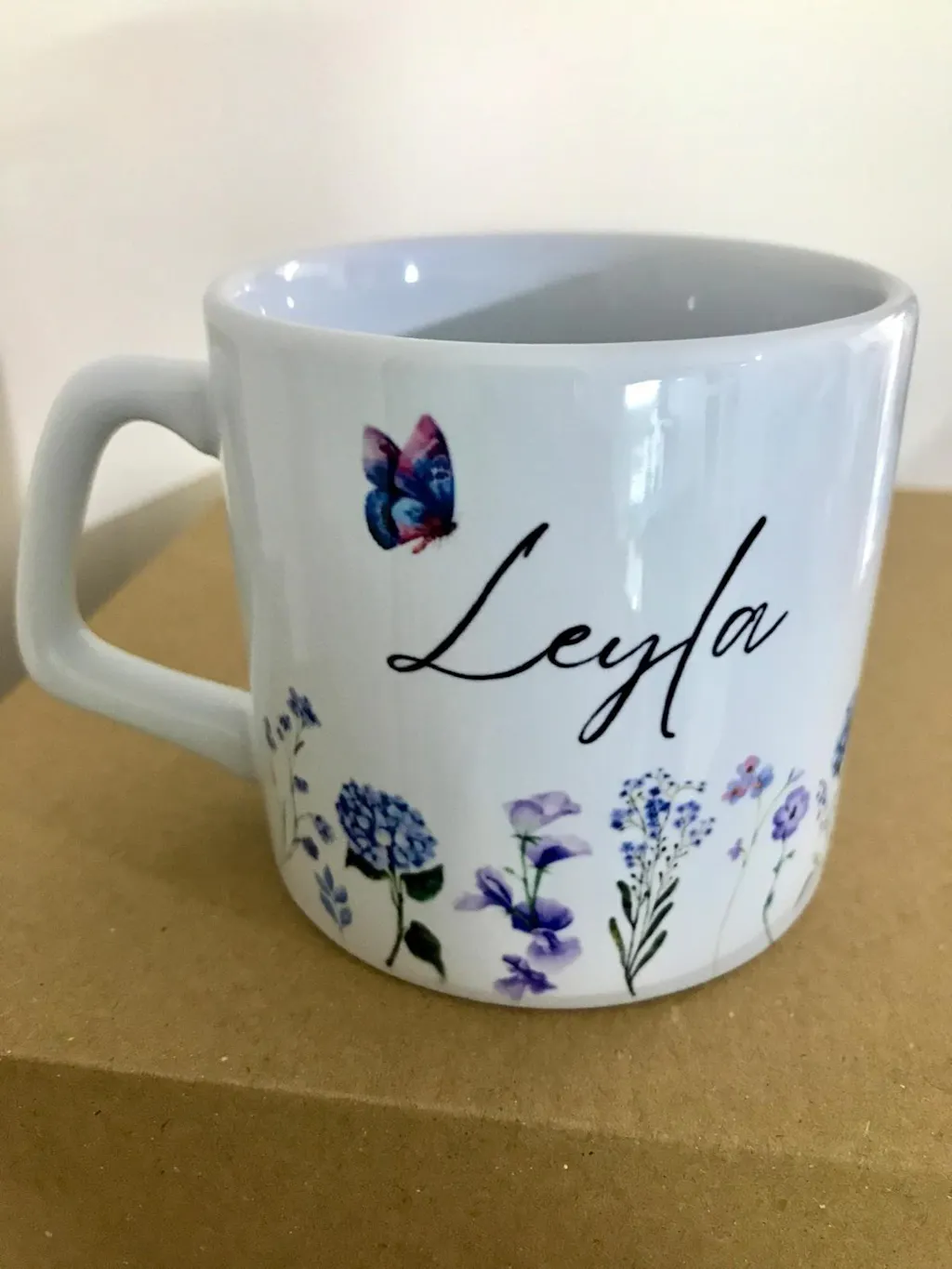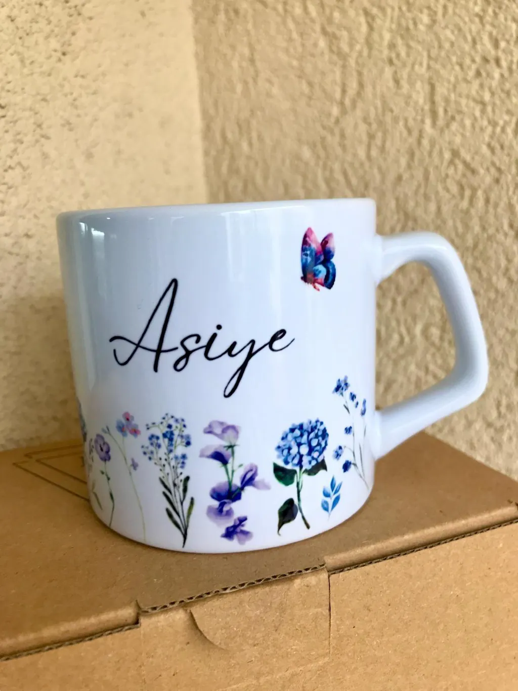 Mavi Bahar Temalı Kişiye Özel Lüks Kupa