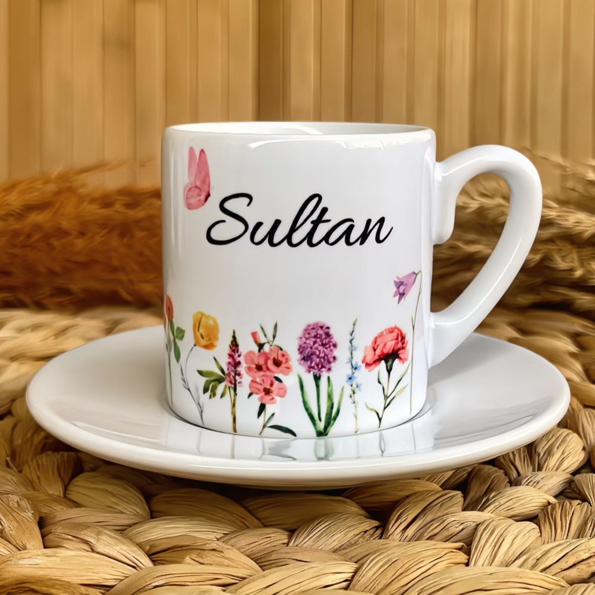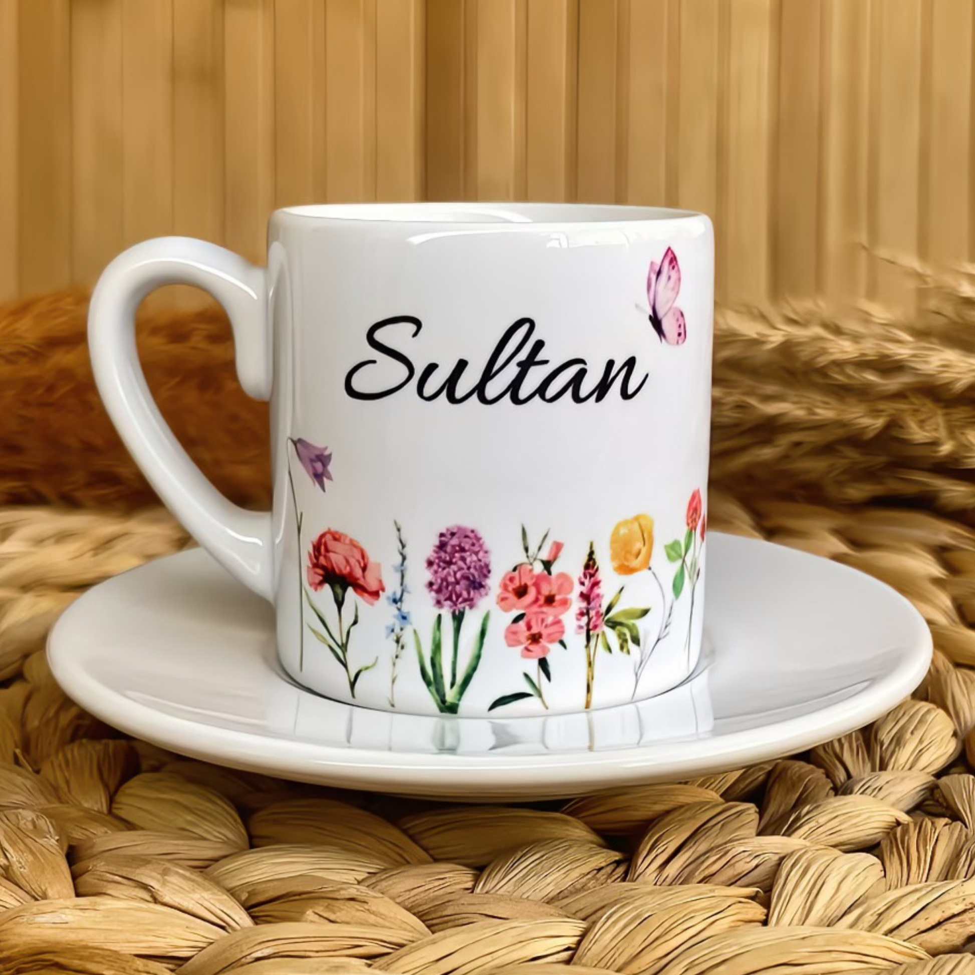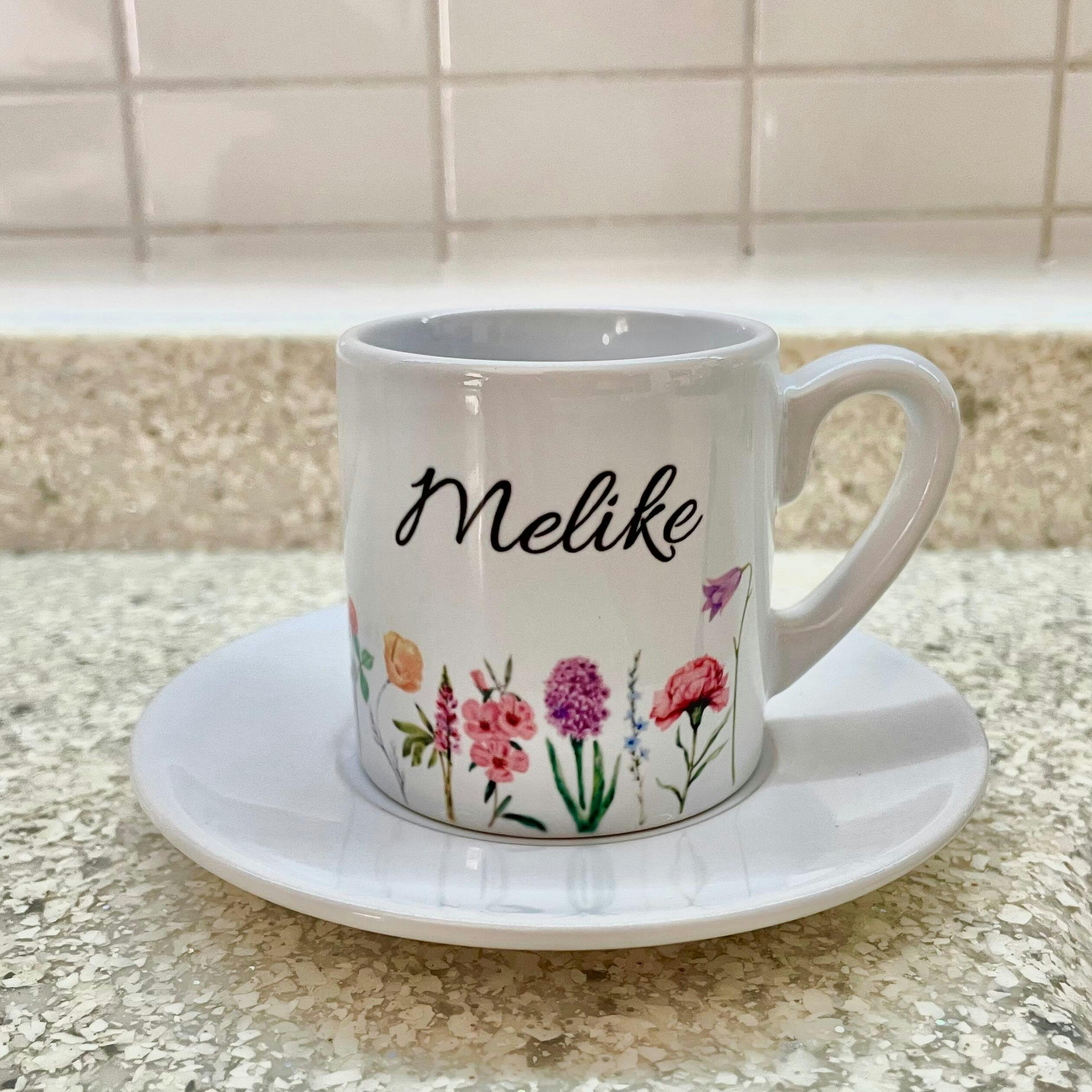 Renkli Harmoni Temalı Kişiye Özel İsimli Türk Kahvesi Fincanı