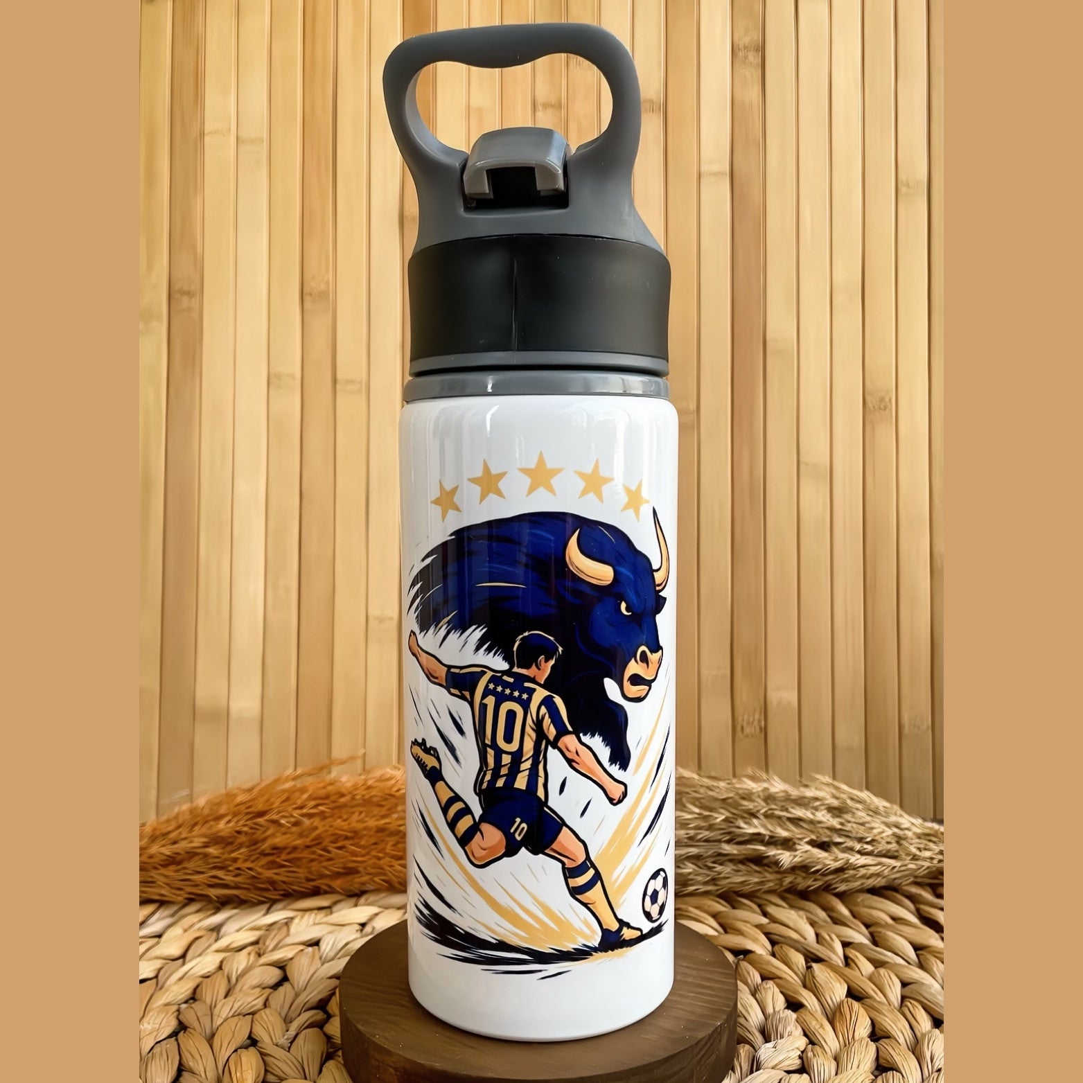 Sarı Lacivert Taraftar Temalı İsme Özel Alüminyum Pipetli Suluk Matara 650 ml