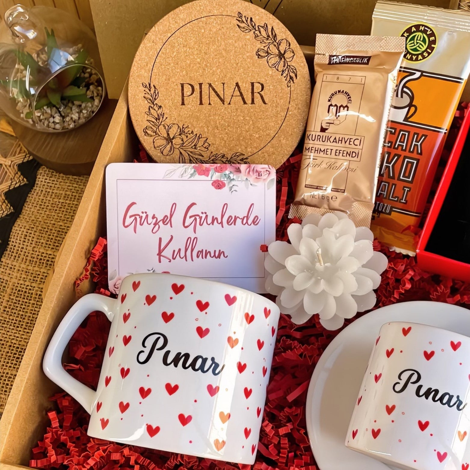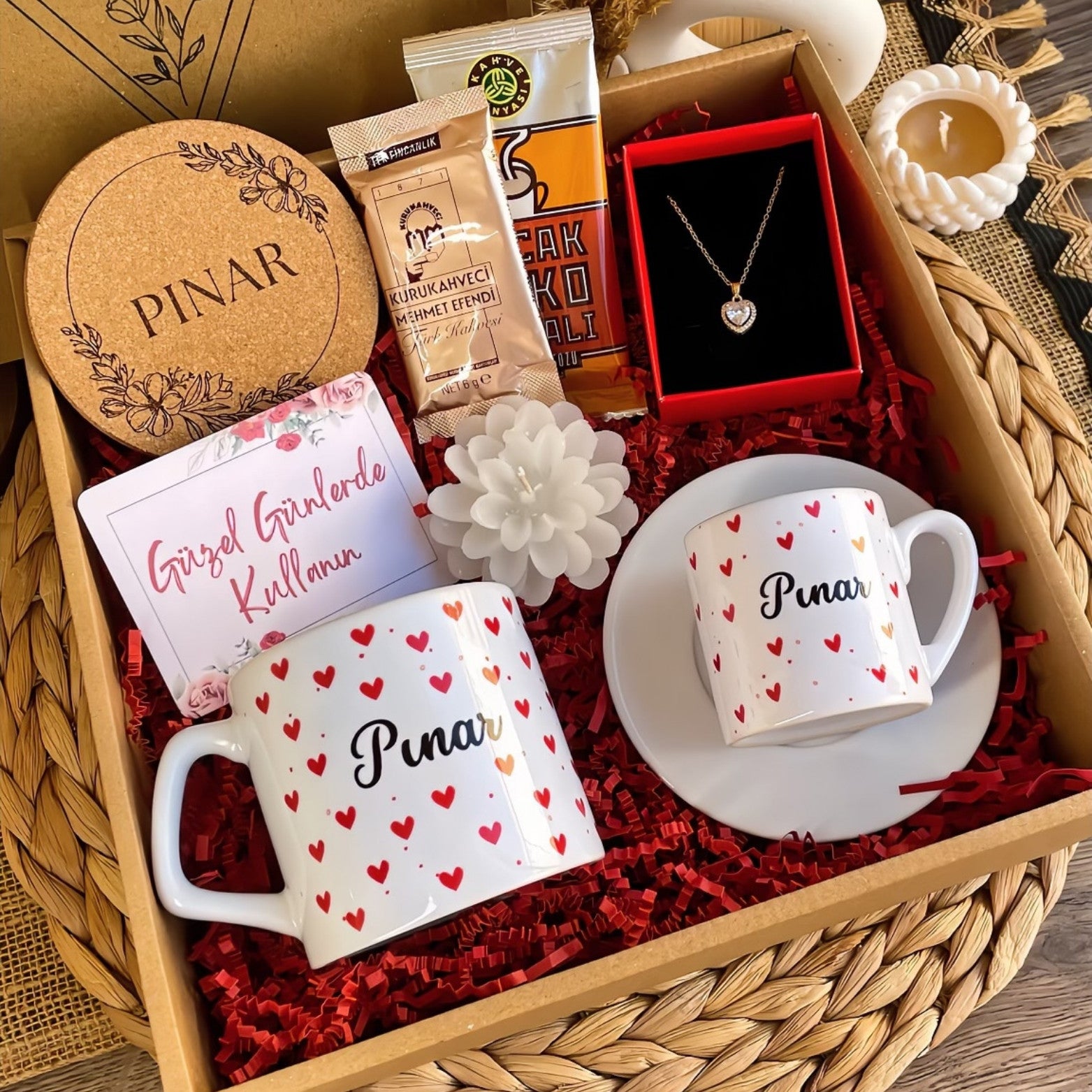 Sevgililer Günü, yıl dönümü ve özel anlar için tasarlanan isme özel Sevgililer Günü hediye kutusu, romantik detayları ve şık içeriğiyle sevdiklerinize unutulmaz bir sürpriz sunar. Kalp temalı tasarımı ve kişiye özel ürünleriyle hem duygusal hem de kullanışlı bir hediye alternatifidir.