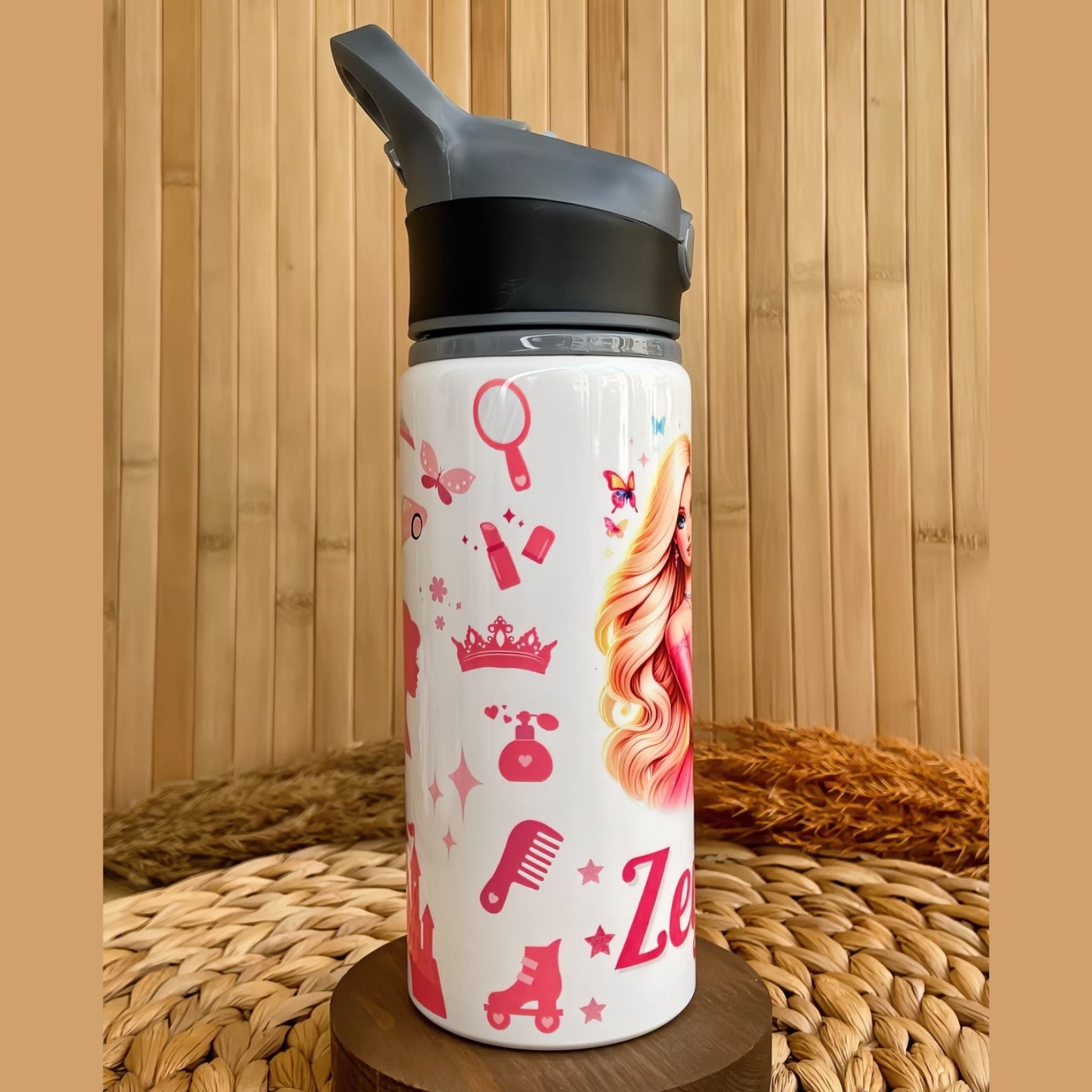 Unicorn Prenses Temalı İsme Özel Alüminyum Pipetli Suluk Matara 650 ml