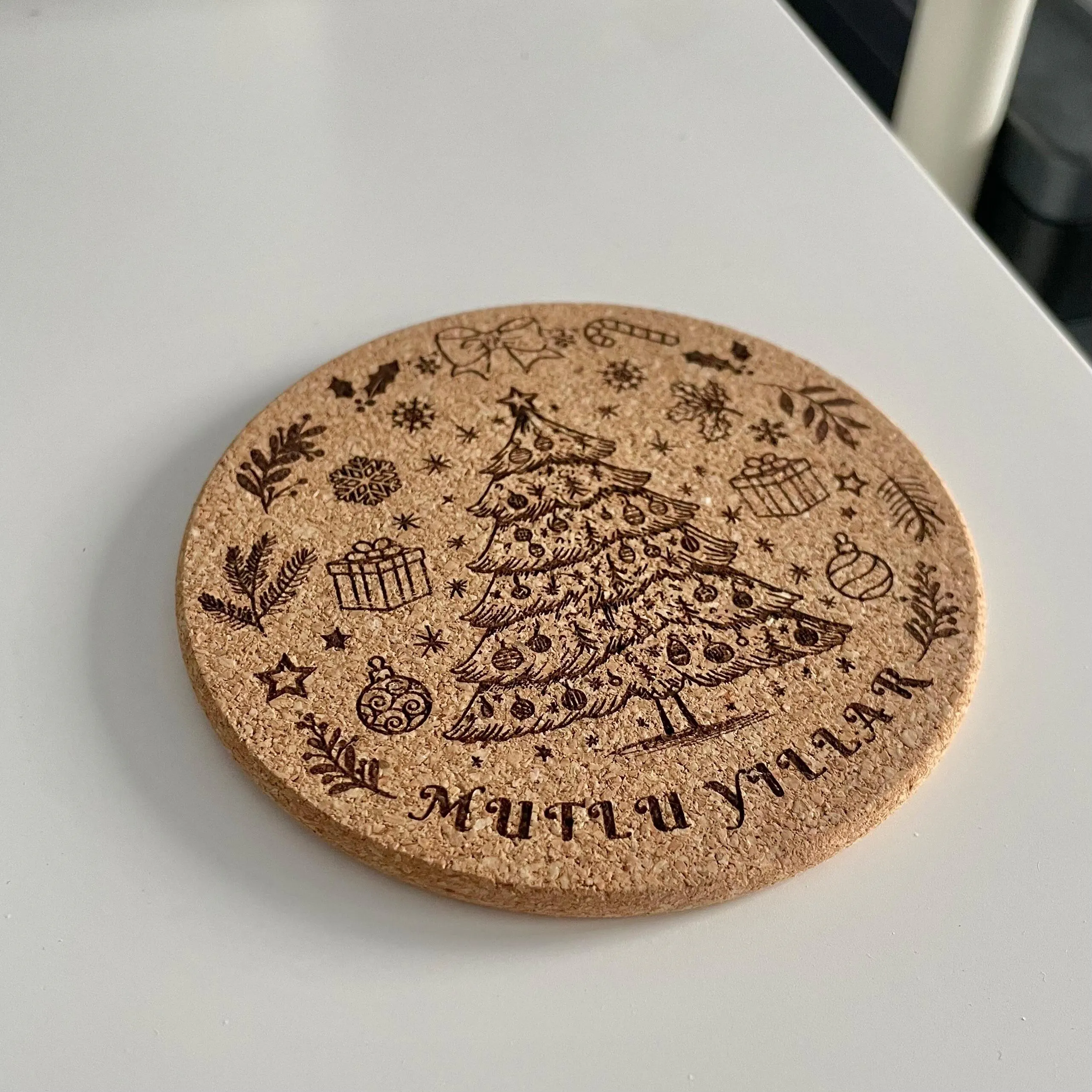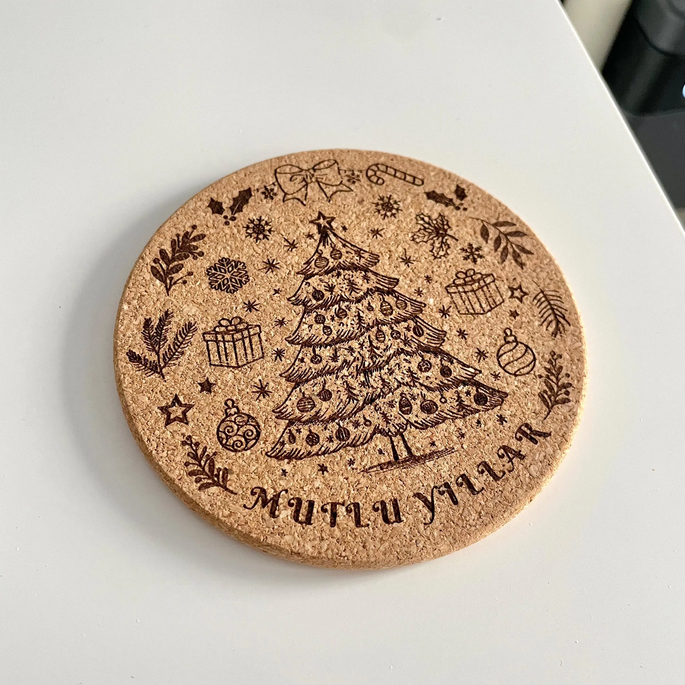 Yılbaşı Temalı Mantar Bardak Altlığı (1 Adet)